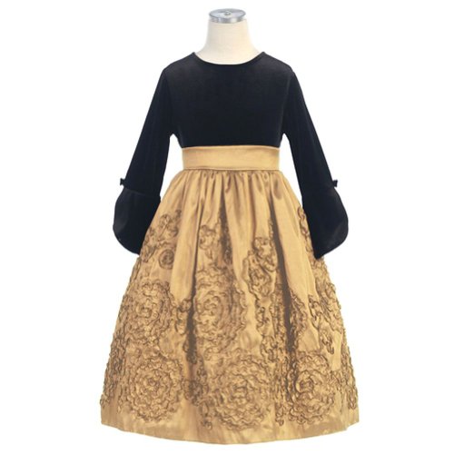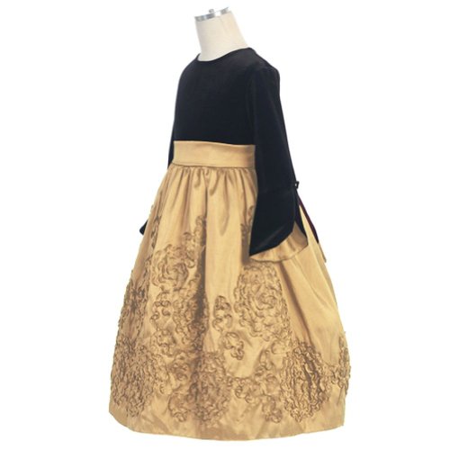 Sweet Kids Gold Taffeta Velvet Flutter Sleeve Christmas Dress Girl 2T