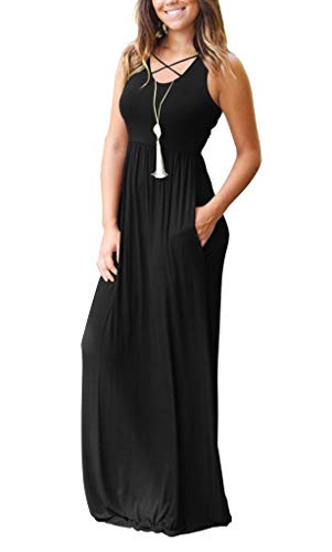 EZBELLE Women's Sleeveless Racerback Maxi Dresses with Pockets Plain Loose Long Dresses