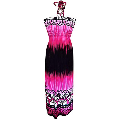 Peach Couture Exotic Tie Dye Self Tie Halter Vacation Maxi Dress Deep Fuchsia XL