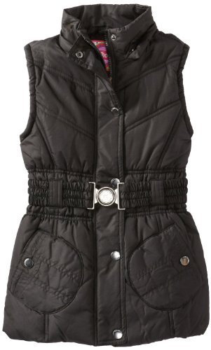 dollhouse Girls Belted Bubble Vest with Faux Fur Trim Hood - Black (Size 2T)