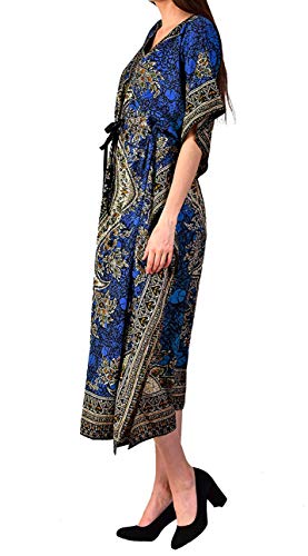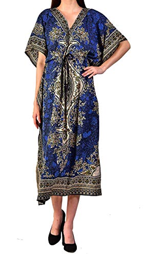 ~ CUSTOMIZE THE FIT, FREE 'N' EASY: With a loose-fitting design, this dress will allow you to move with ease and comfort with a cinch waist tie to create a beautiful silhouette and give you the freedom to customize the fit to suit your unique shape. It is made from 100% viscose and woven microfiber, so the material is lightweight and flowing. You will look and feel fresh even when it's humid or hot outside. The full size of this kaftan is 50 inches bust and 52 inches in length.