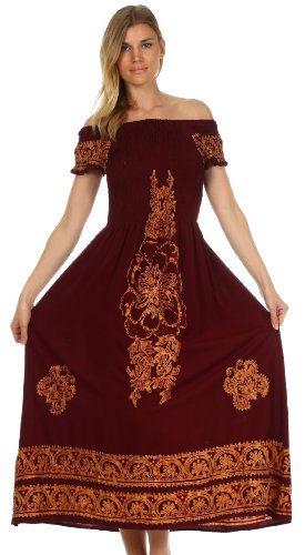 ~ Fits Approximately Dresses Sizes: Small US: 2-4, Medium: US: 6, Large US: 8, XL US: 10. Runs Small. The length of the dress falls to the ankle. Measured from size Medium - 53" approximate length from high point shoulder to hem.