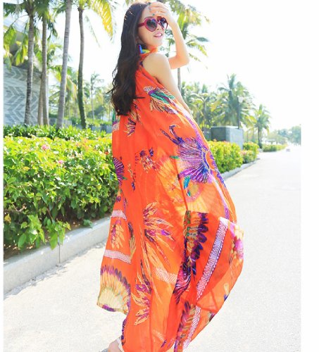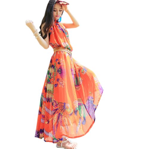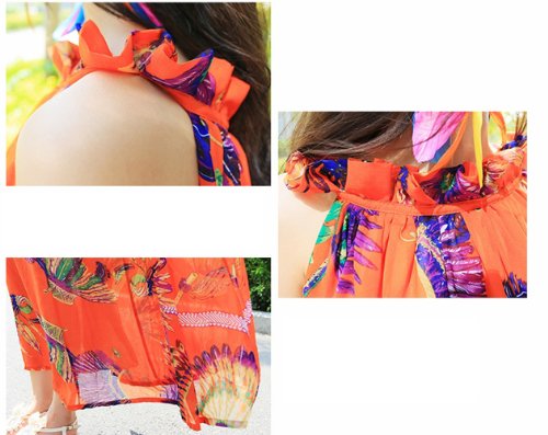 WHMAXIM Strap Bohemia Floral Fabulous Summer Party Holiday Maxi Dress (Orange)/large