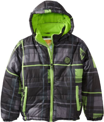 Big Chill Little Boys Plaid Hooded Puffer Jacket - Black (Size 2T)
